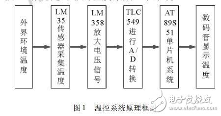 The temperature acquisition and display system consists of several key modules: a temperature sensing module, an analog-to-digital (A/D) conversion module, a microcontroller unit (MCU) control module, a digital tube display module, and a download module. The working principle involves collecting ambient temperature using the LM35 sensor, amplifying the output signal with an LM358 operational amplifier, converting the analog voltage into a digital value via the TLC549 A/D converter, and then displaying the measured temperature on a digital tube controlled by the AT89S51 microcontroller. The system operates as an open-loop control system, with the block diagram shown in Figure 1.